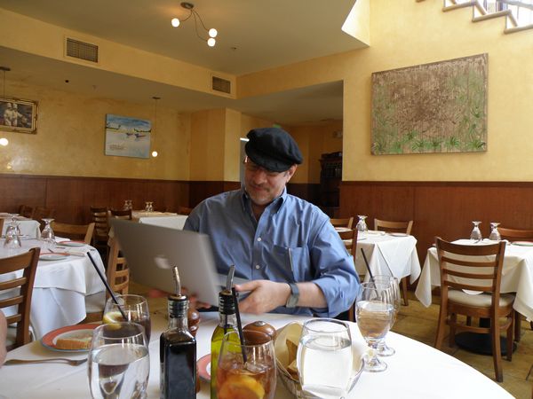 | This is for Ron's boss, showing he worked during lunch. We are in the La Piazza, which has an incredibly good Tilapia entree. | Ron and Deb posing for my candid photo. |