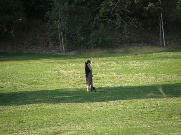 | Resident of Hollywood Hills. A movie star maybe? | Panoramic view of the movie star dog park. You may be able to see the Hollywood sign on the hill. |
